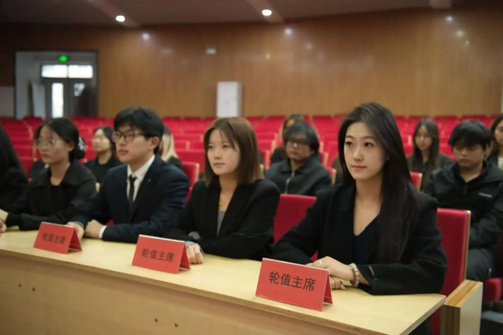 第二项,致开幕词。团总支副书记吴昊泽代表学院团总支为大会致辞。他充分肯定了学院学生会过去在校园文化建设、志愿服务开展、实践创新推进等领域取得的优异成绩,向全体学生会成员的真情奉献与辛勤付出表达衷心感谢,并对学生代表提出期望:希望同学们紧扣时代脉搏、贴合青年特点,切实抓好工作落实,为个人人生增添新篇章,为学院改革建设再创佳绩。