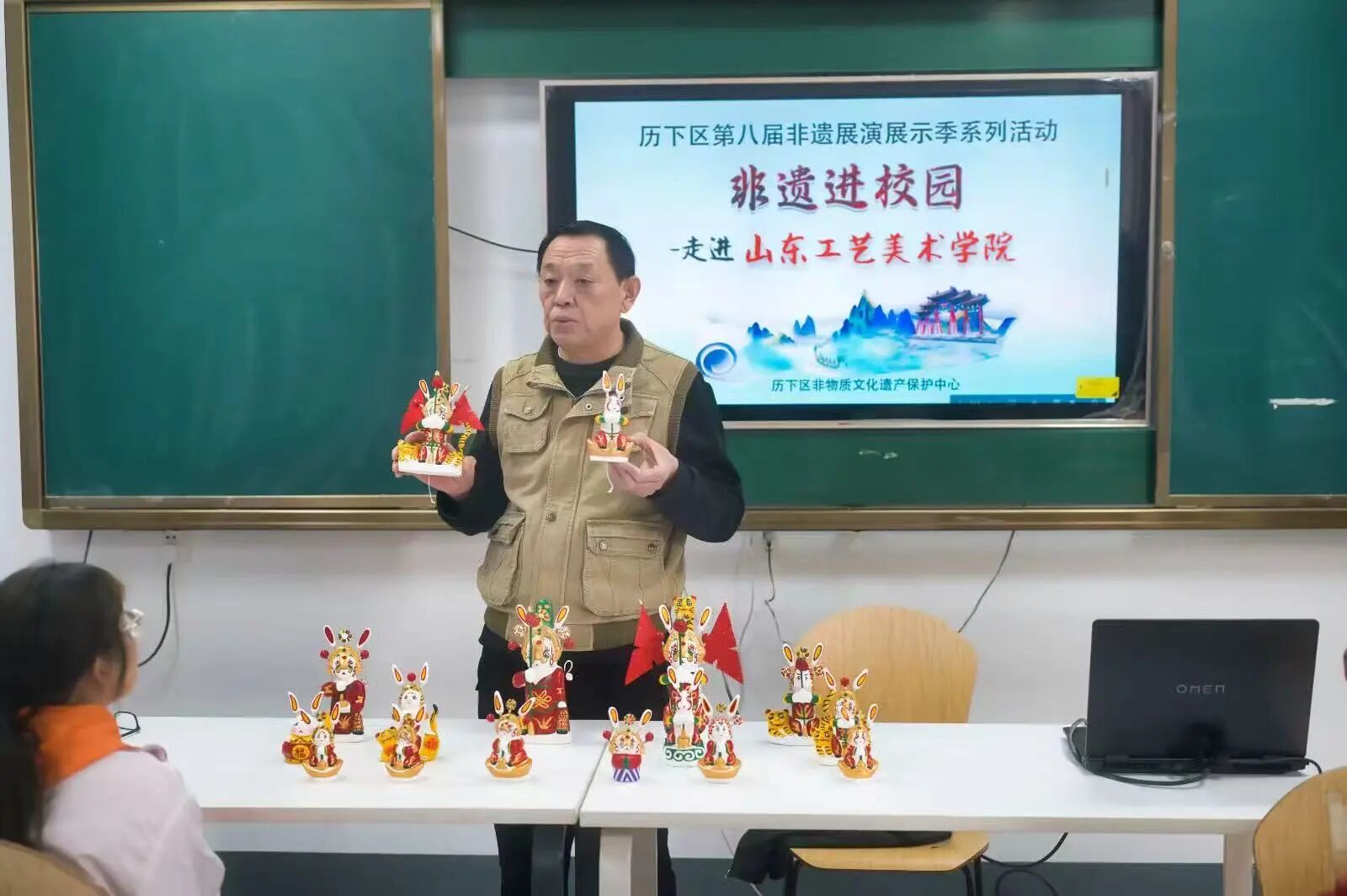 为深化共青团文化育人实践,搭建校地协同育人桥梁,推动地方非遗资源与高校艺术教育深度融合,引导青年学生在传统文化传承中厚植家国情怀、锤炼创新本领,近日,应用设计学院团总支联合济南市历下区文化和旅游局,精心策划“非遗进校园” 系列主题团日活动,以“传承人授课+实践创作”的形式,为青年学生打开非遗文化之门,激发其传承创新传统文化的责任感与使命感。