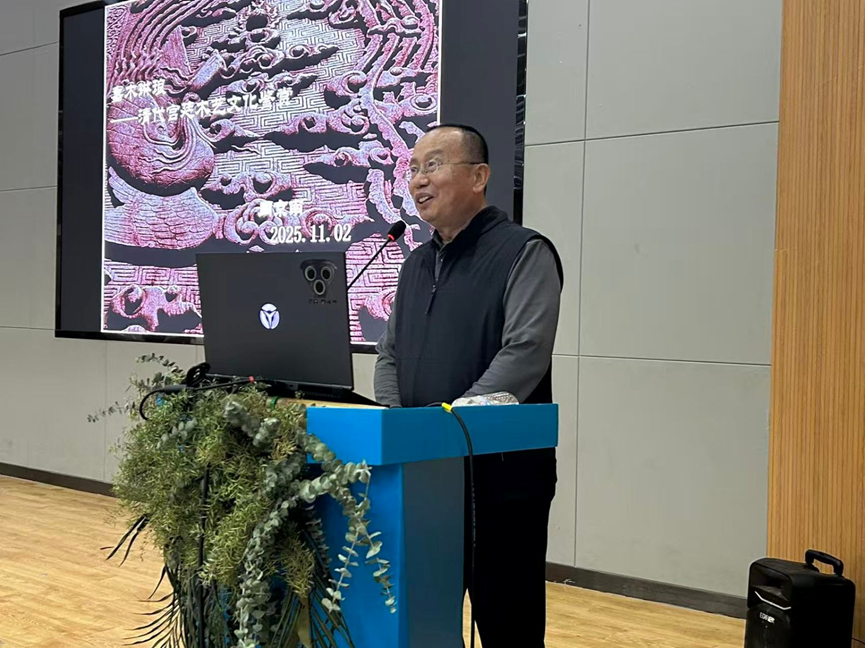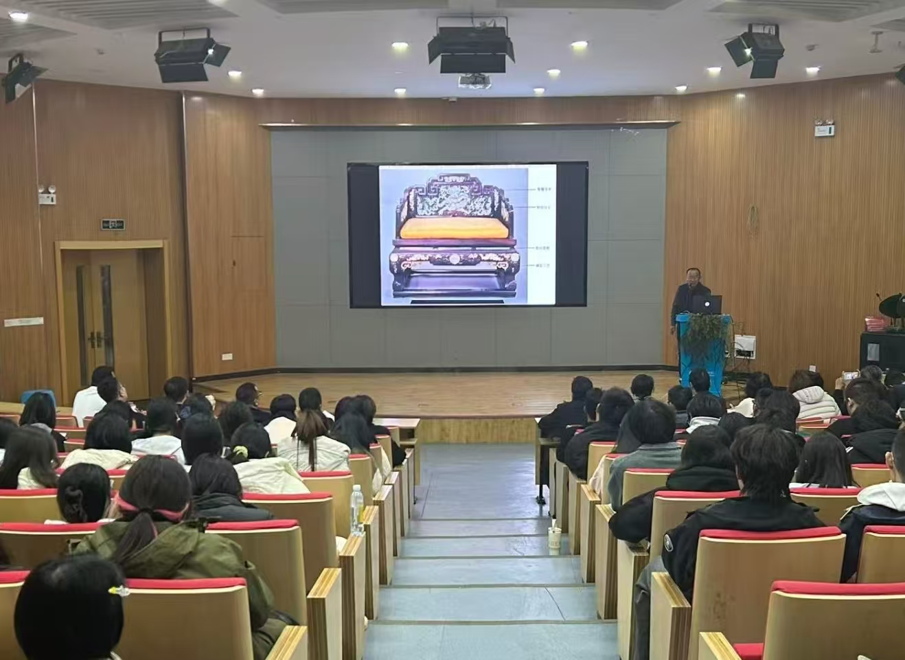 讲座中,周京南教授以“故宫珍藏的家具、文具、皇家武备及宫殿建筑装修”为核心脉络,凭借深厚的学术积淀与生动的文物解读,引领师生沉浸式走进清代宫廷的木质世界。他聚焦清代宫廷木作的匠心精粹,重点阐释了广式家具与清宫文房器用的独特魅力。广式家具巧用西洋花纹点缀其间,辅以象手、象鼻等灵动别致的造型设计,将异域风情与中式工艺巧思完美交融,成为帝王专属的稀世珍品;清宫文房器用则尽显雅致格调与考究工艺,既有承袭《长物志》审美理念的文人小件文玩,亦有以紫檀木精雕细琢、刻绘兰亭雅集盛景与乾隆御制诗的“兰亭八友插瓶”,更不乏雕漆紫檀木管提笔等帝王御用文房四宝,每一件器物都承载着文人雅趣与皇家气派,诉说着清代的文化风尚。