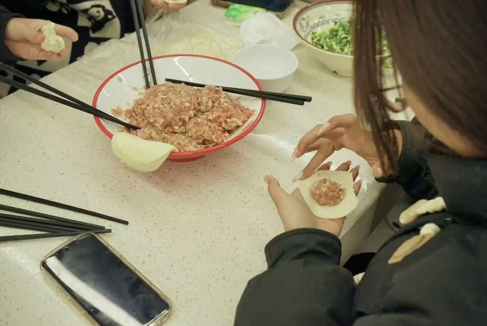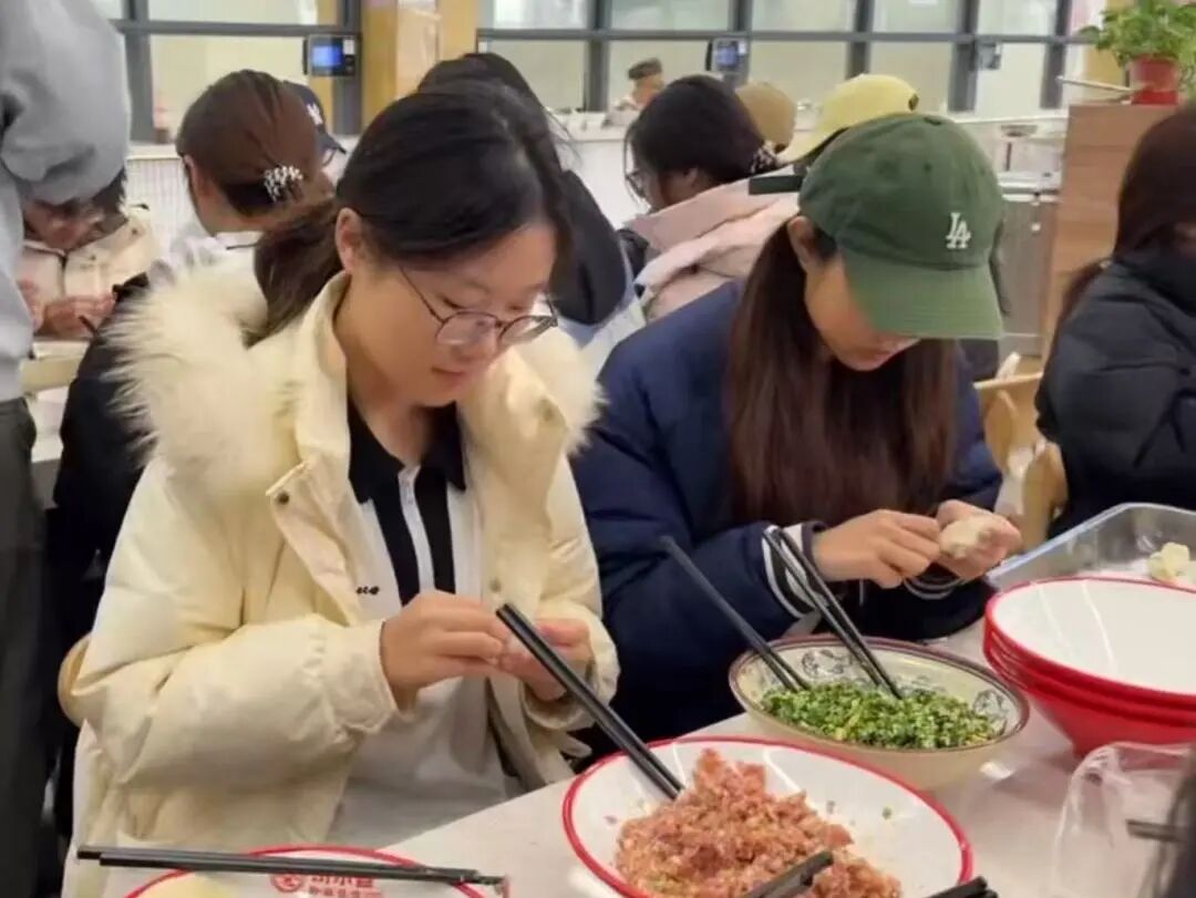 活动现场,后勤管理处精心筹备了新鲜面团、丰富馅料及全套工具,白菜猪肉、韭菜鸡蛋、香菇鲜肉等多种经典口味馅料一应俱全,满足师生多样口味需求。师生们迅速融入其中,分工协作、默契配合,揉面、擀皮、包馅有条不紊,现场气氛热闹祥和,其乐融融。