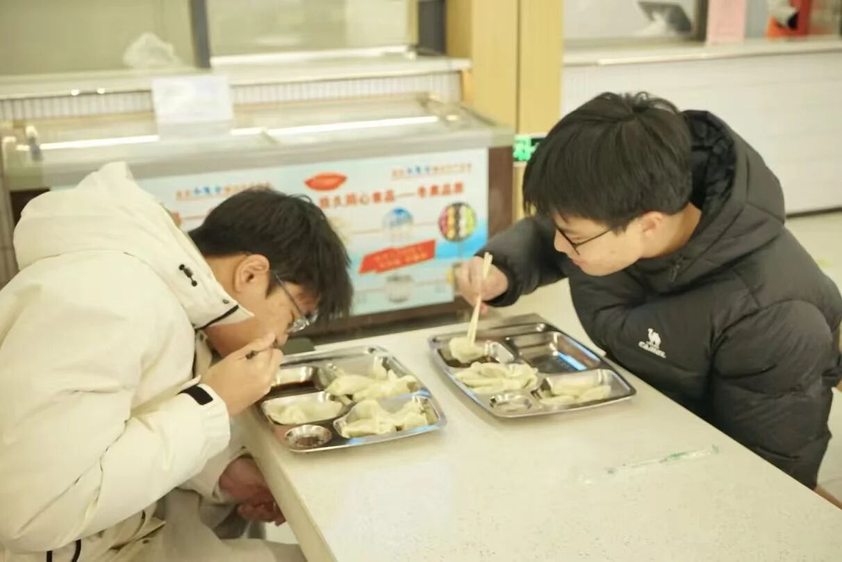 一番忙碌后,一盘盘热气腾腾、形态各异的饺子陆续出锅。师生们围坐一桌,品尝水饺,畅谈学业生活,分享新年期许,在舌尖的暖意中感受团圆美好。