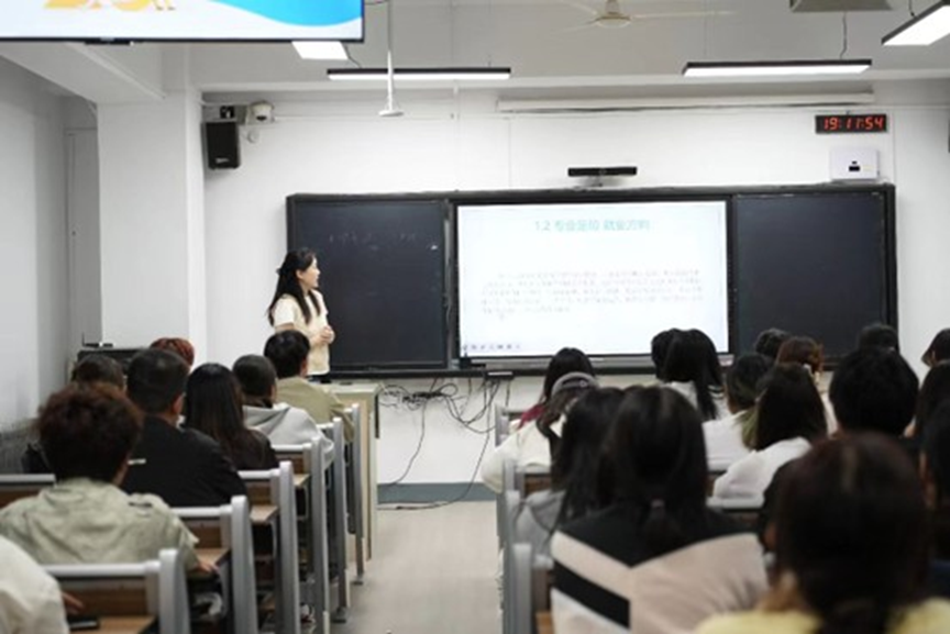 人才培养环节,朱姝结合专业人才培养方案,逐一对培养目标、核心能力要求及学分构成进行细致解读。她强调,专业坚持“理论筑基、实践赋能”的教学理念,通过项目式教学、校企联合实训、学科竞赛等多元形式,推动学生将理论知识转化为实际操作能力;同时,针对学生个性化发展需求,专业通过“导师制”“兴趣工坊”等模式,为不同特长的学生提供定制化成长支持,充分激发学生的专业潜力。谈及课程体系,朱姝介绍,专业围绕“美术基础与数字技术深度融合”的课程设计逻辑,构建了覆盖影视剪辑、动画设计、虚拟制作、数字特效、交互设计等关键领域的系统化课程矩阵。尤为重要的是,课程设置紧密对标行业发展前沿,将 AI 数字绘画、VR 虚拟拍摄、实时渲染等新兴技术融入核心课程,深度契合“校城融合”背景下产教融合的育人要求,确保学生所学知识与行业岗位需求精准对接,为未来职业发展筑牢基础。学习资源分享部分,朱姝为新生精心筛选并推荐了涵盖影视理论经典、数字艺术创作、技术实操指南等领域的专业书目与优质影视片单,为新生课后自主学习提供了清晰指引。此外,她还详细介绍了专业的“双师型”教学团队 —— 既有深耕学术领域、教学经验丰富的校内导师,也有来自影视公司、数字媒体企业的行业专家,这支团队将从理论教学、技术指导、职业规划等方面,为新生提供全方位、立体化的学习支持。