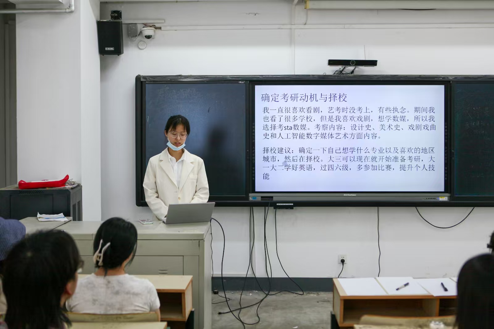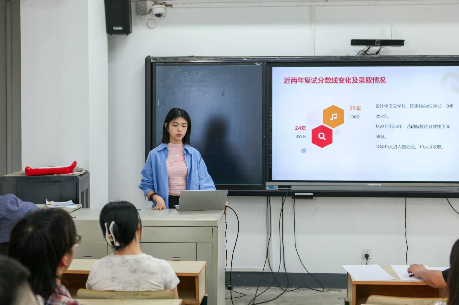 为帮助同学们明确考研目标、掌握备考技巧,4月25日,应用设计学院在三合堂举办考研经验分享会。本次分享会邀请到5位成功考取国内知名高校设计类相关专业的学长学姐,学院2022级、2023级学生参与。